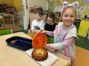 Děti se s velkou radostí zapojily do přípravy slaných šneků. Společně pomáhaly s válením těsta, potíráním náplně a opatrně zkoušely těsto stáčet do tvaru šneků.