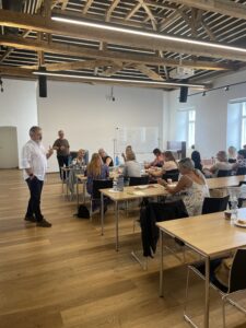 Na druhou část dne se přesouváme do spodní třídy, která je velmi prostorná a která slouží pro pohybové hry a činnosti dětí. Využíváme zde nářadí při nejrůznějších rozcvičkách a pohybových aktivitách, které různými způsoby obměňujeme. S dětmi tak rozvíjíme pohybovou koordinaci i rytmické cítění za doprovodu klavíru, který je v této třídě umístěn také. V hudebním koutku nechybí ani dětské hudební nástroje. Třída je vybavena kouty pro hru dětí, několika stolečky, kde pracujeme především s dětmi předškolního věku a také velkým kobercem, který slouží pro pohodlné a teplé zázemí dětem nejmladším.