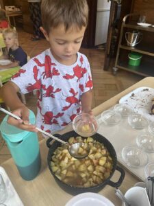 Pro práci s dětmi využíváme dvě třídy, kdy každá splňuje svůj účel. Ranní scházení, spontánní a individuální hry probíhají v horní třídě, která je tvořena několika hravými kouty. Každé dítě má tak prostor pro svou hru a činnost. Ve třídě najdeme vyvýšené patro, prostor pro hru zde upřednostňují především starší děti. Díky vyvýšenému prostoru vznikl další kout a to je prostorná kuchyňka, která se nachází pod výše zmíněným vyvýšeným koutem. V této třídě najdeme také velmi důležité zákoutí a tím je výtvarný koutek, díky kterému se s dětmi pouštíme do činností a prací všeho druhu. Hravě tak rozvíjíme dětskou fantazii, manipulační a praktické schopnosti, děti připravujeme pro vytrvalost v započatých činnostech, rozvíjíme hrubou a jemnou motoriku.