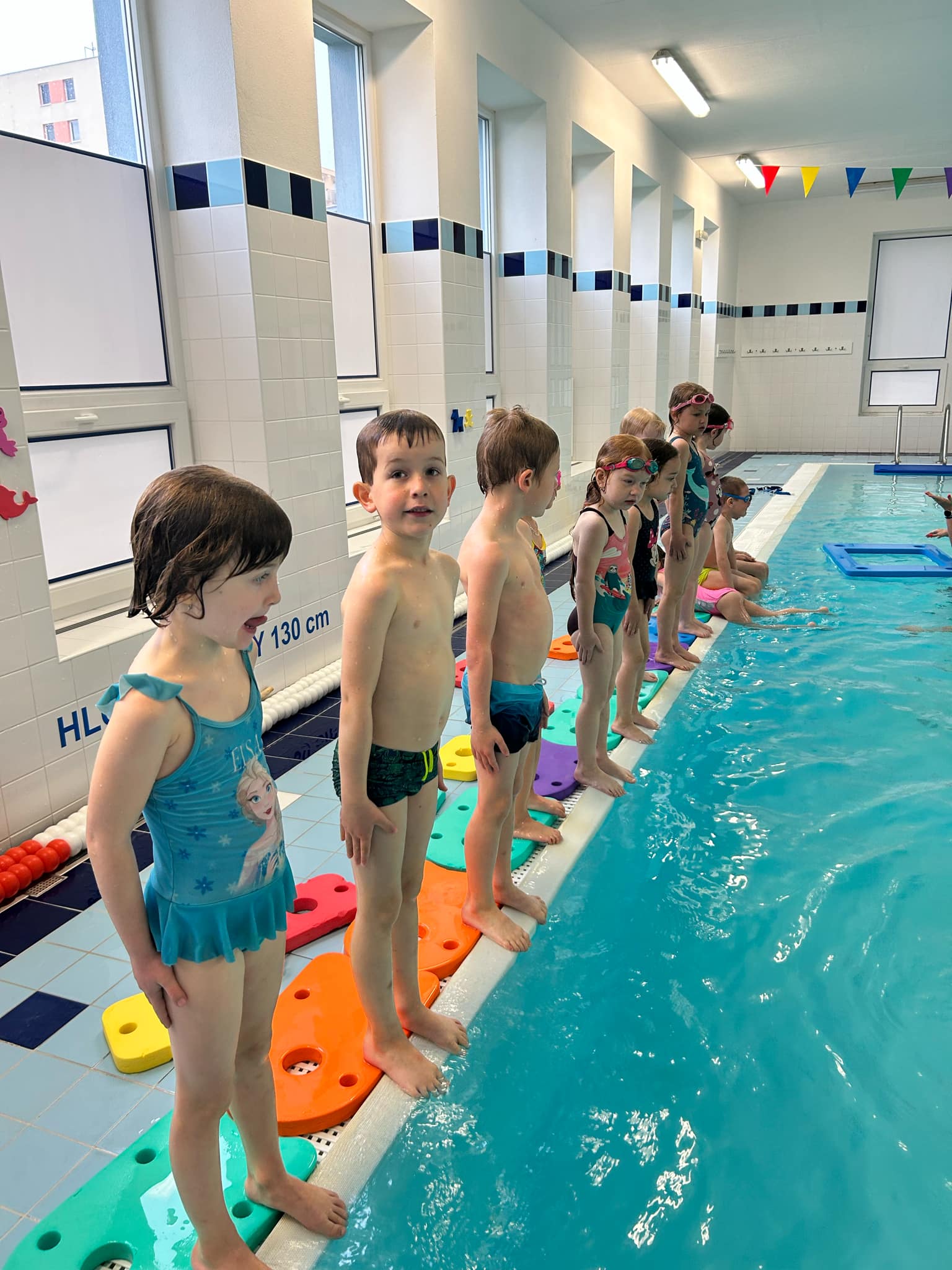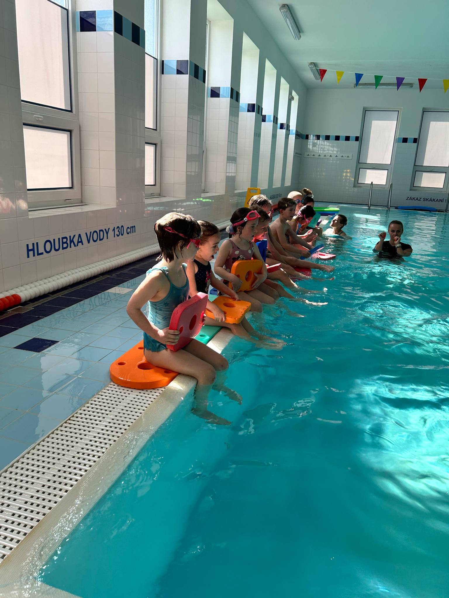 Dnešní lekce byla plná zábavy a pohybu. Děti si vyzkoušely jízdu na deskách, skluzavku do vody i potápění pro hračky. Všichni si lekci moc užili a dělají skvělé pokroky!