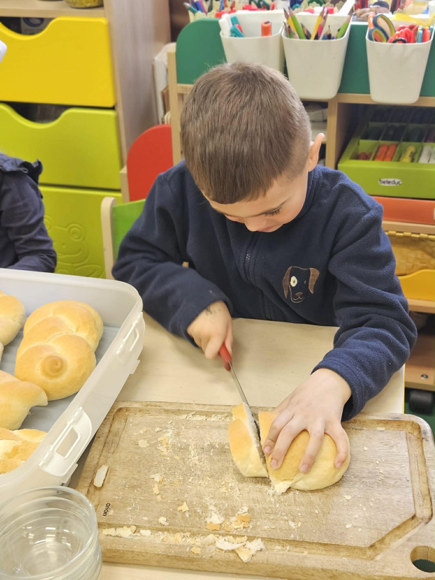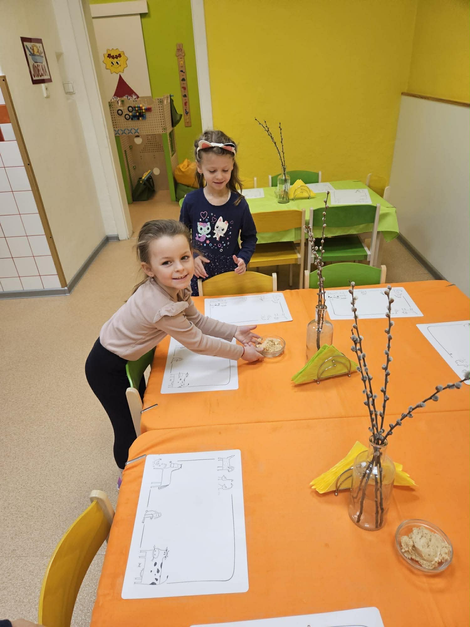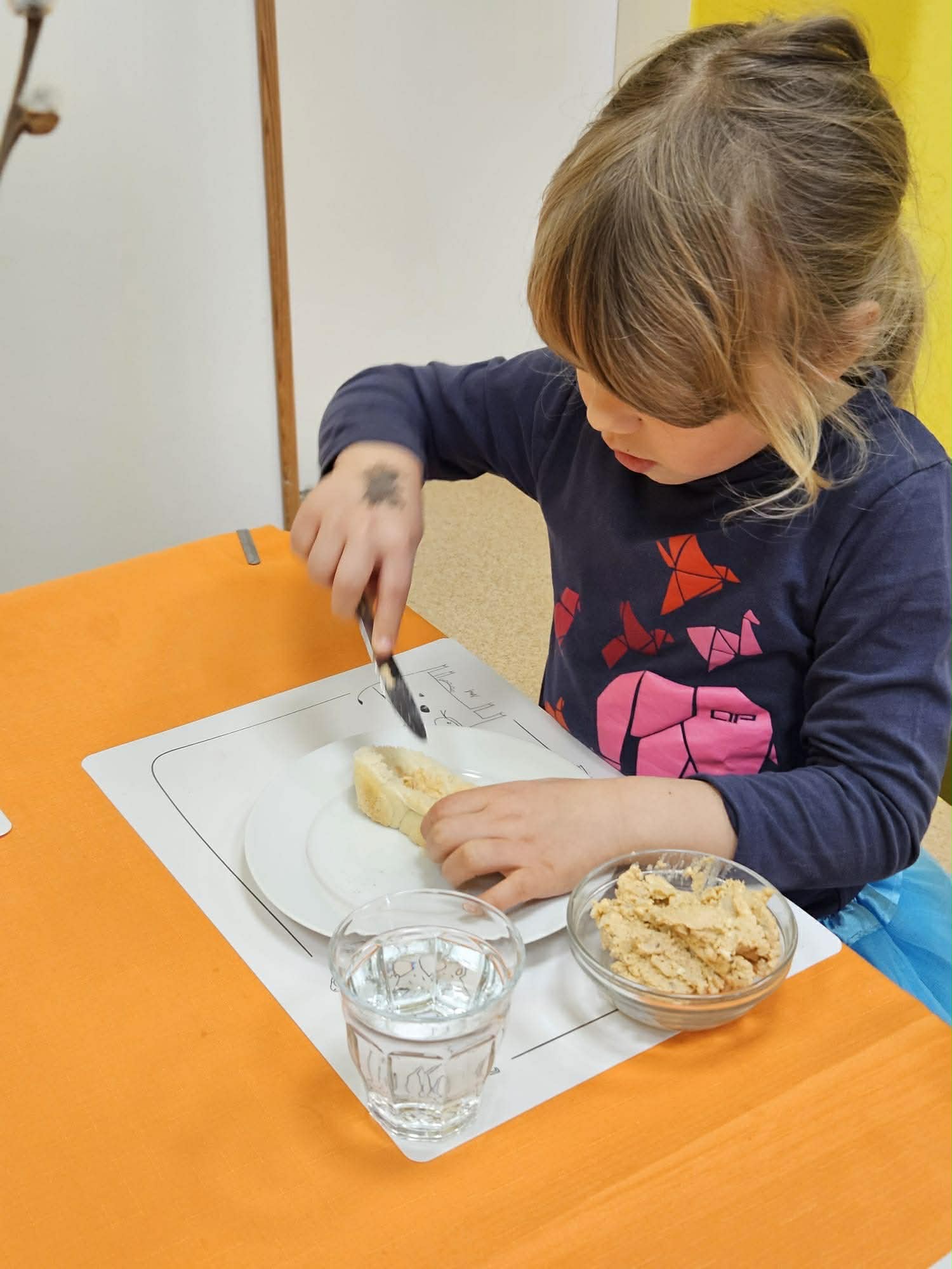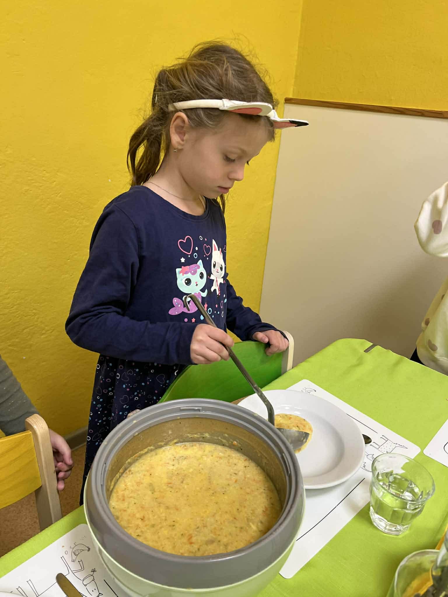 Samostatnost dětí při jídle V naší mateřské škole podporujeme děti v samostatnosti i při přípravě jídla a stolování. Při dopolední svačině si děti vyzkoušely připravit rybičkovou pomazánku. Pomáhaly s jejím mícháním, krájením pletýnek a okurky a zapojily se i do mytí nádobí v kuchyni. Při svačině si mohly zvolit nápoj podle chuti – vodu, čaj nebo jablečnou šťávu ředěnou vodou. Samostatnost rozvíjíme také u oběda. Děti si samy prostírají, polévku si nabírají v množství, které zvládnou sníst, a hlavní jídlo – hamburger s domácí houskou a trhaným kachním masem – si také samy servírují. Po jídle děti stírají zbytky do koše na bioodpad a uklízí své místo. Je vidět, že děti všech věkových kategorií se dokážou obsloužit samy a s radostí se zapojují do každodenních činností.