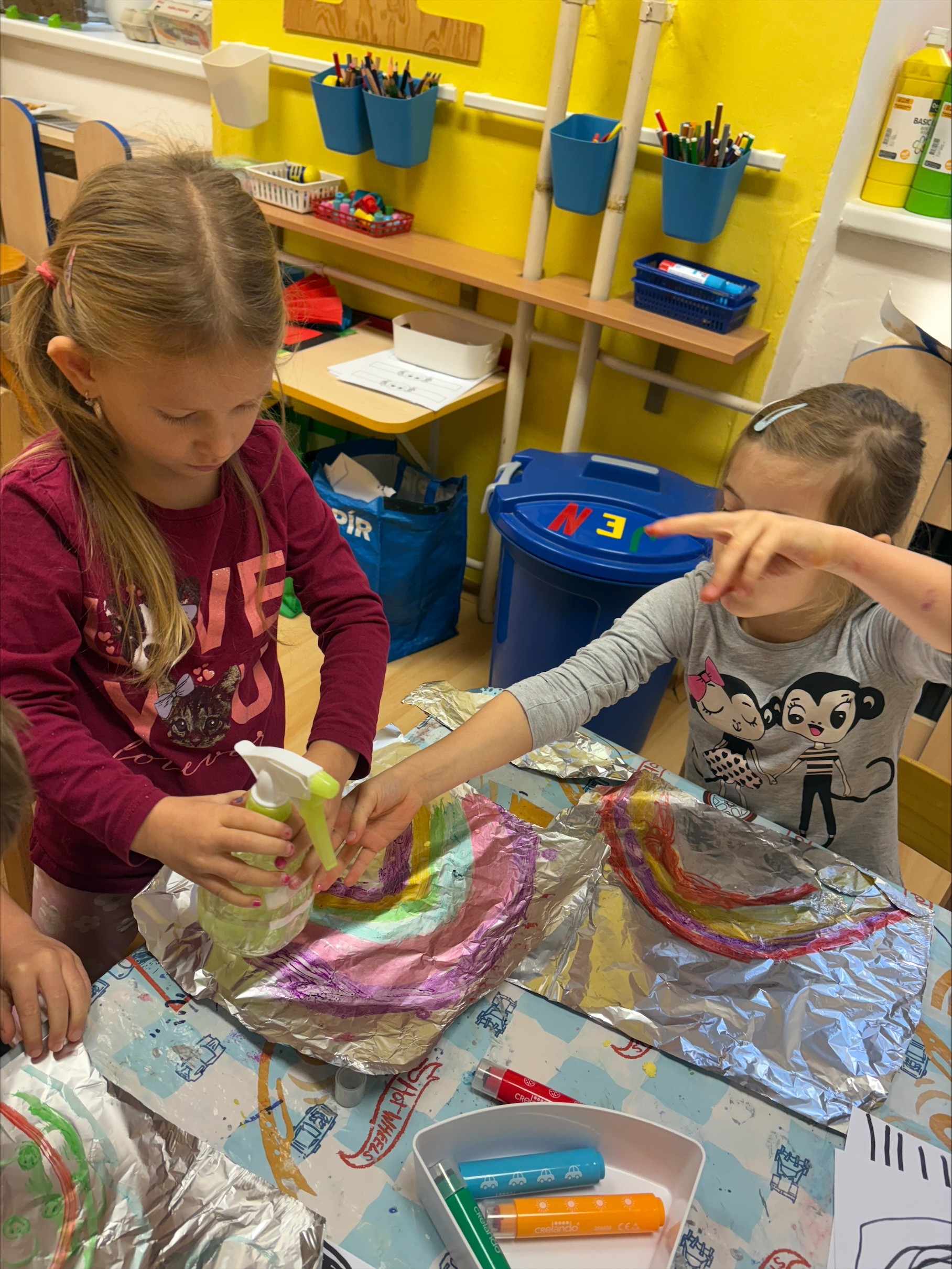 Duhovy týden u žabiček plný tvoření různými technikami,cvičení a procvičování barev a experimentů