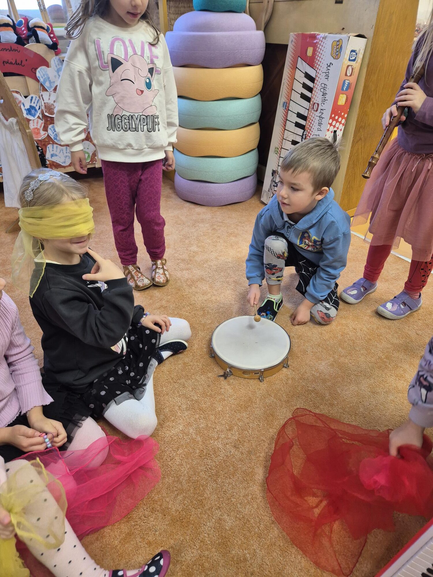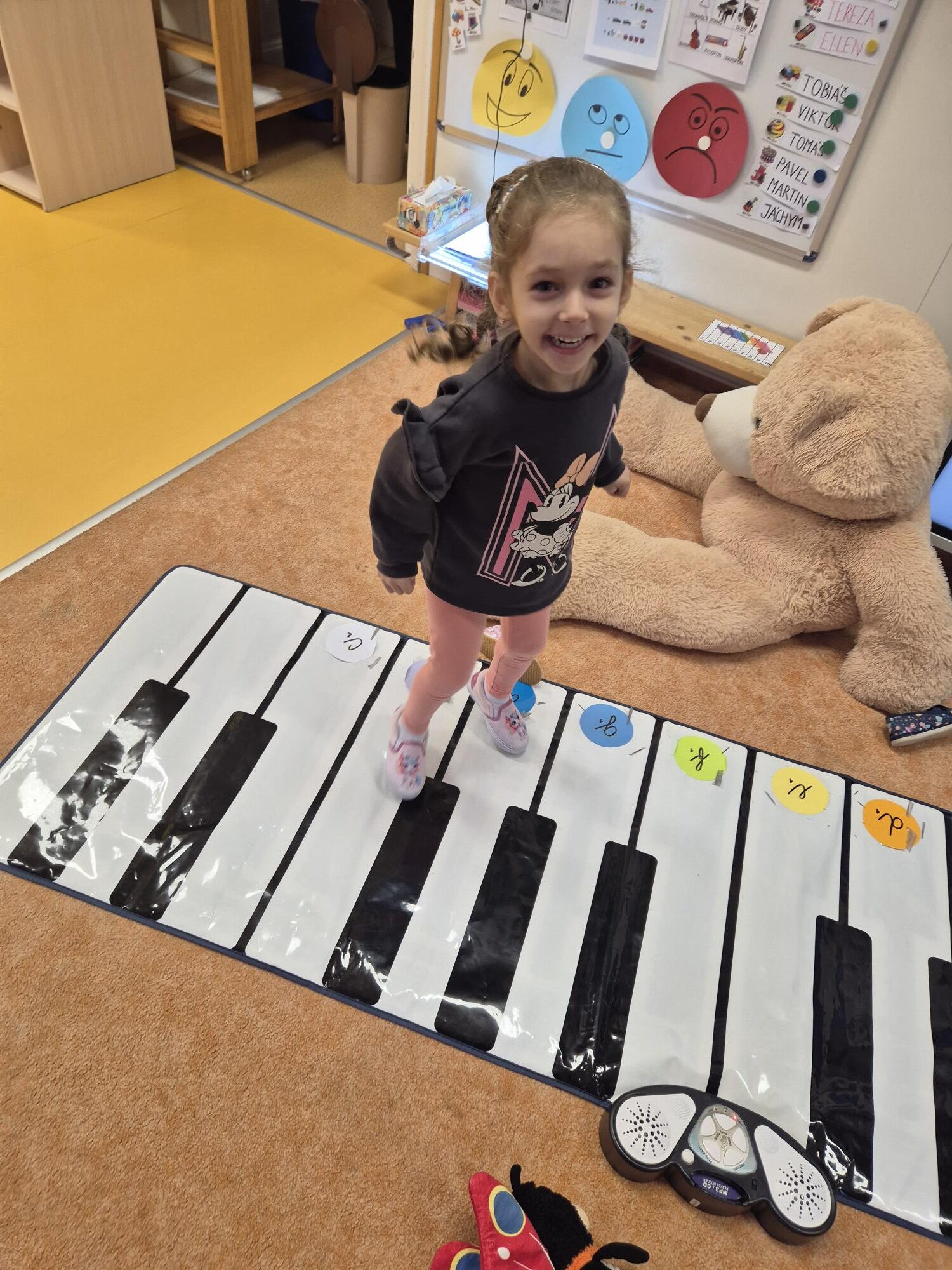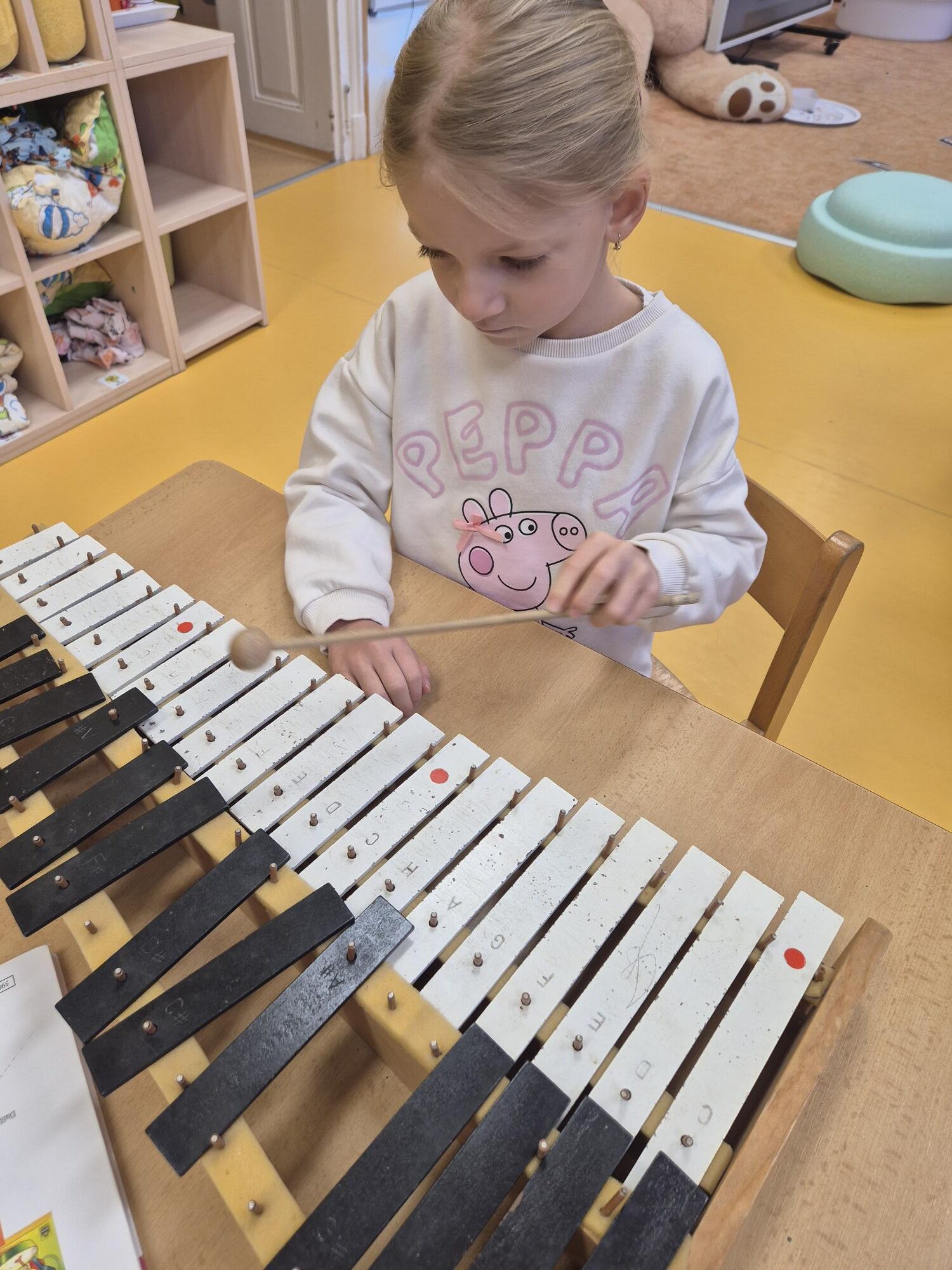Děti si zvolily toto krásné téma, které je moc bavilo. Poznávali jsme různé nástroje a zkoušeli, jak znějí. Vyzkoušeli jsme si hru na bubínek, triangl, flétnu, klavír a mnoho dalších. Děti se učily rozpoznávat rytmus, poslouchat jeden druhého a hrát společně, jako malý orchestr. Hudební sluch nám rozhodně nechybí.