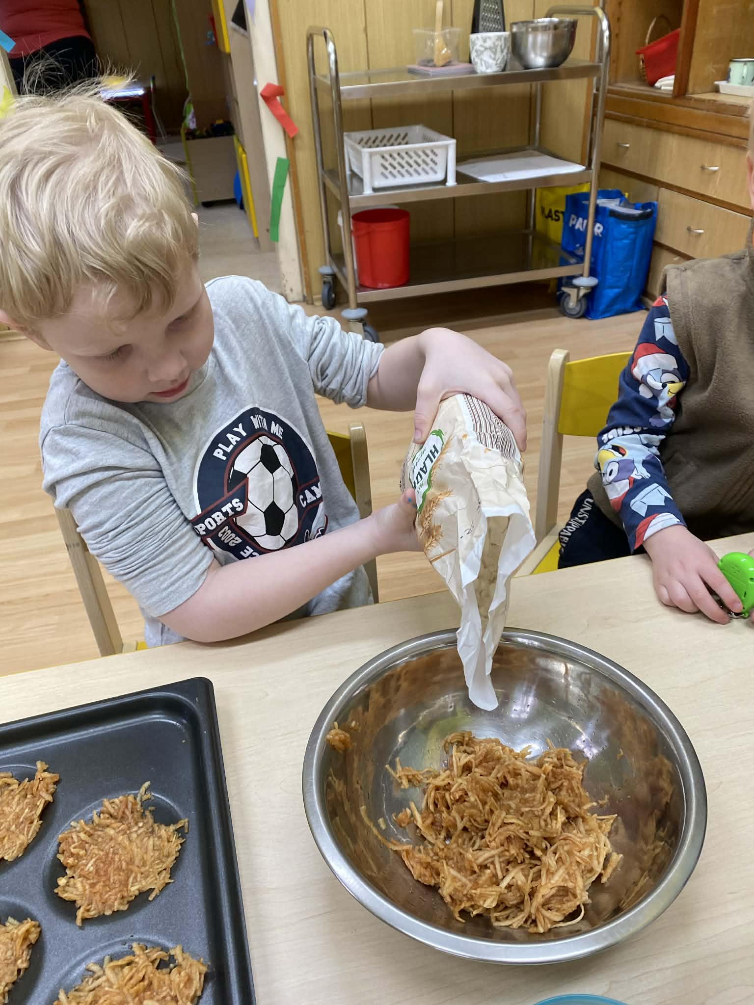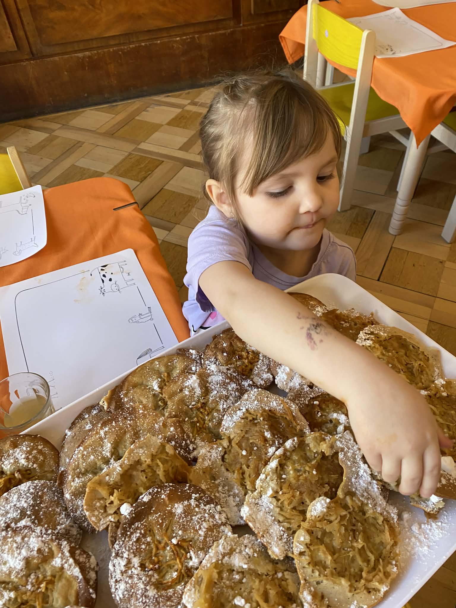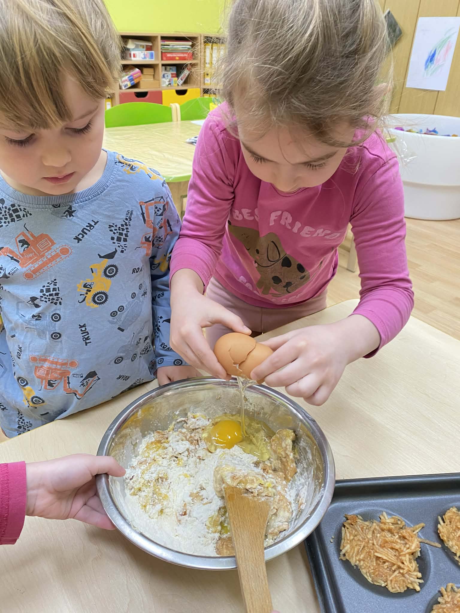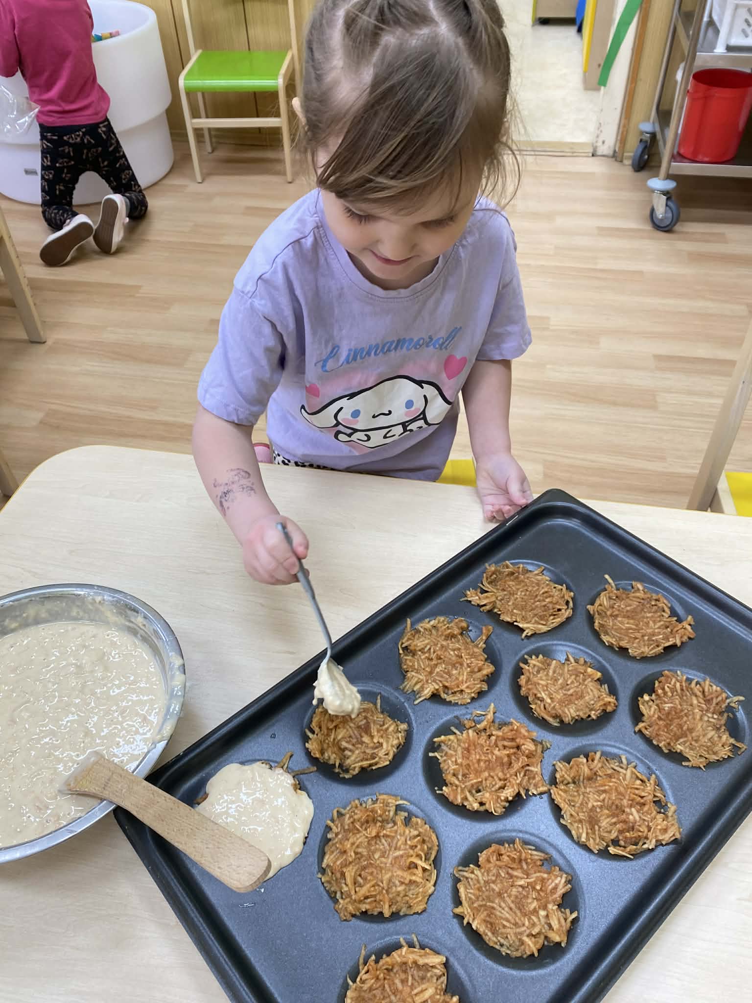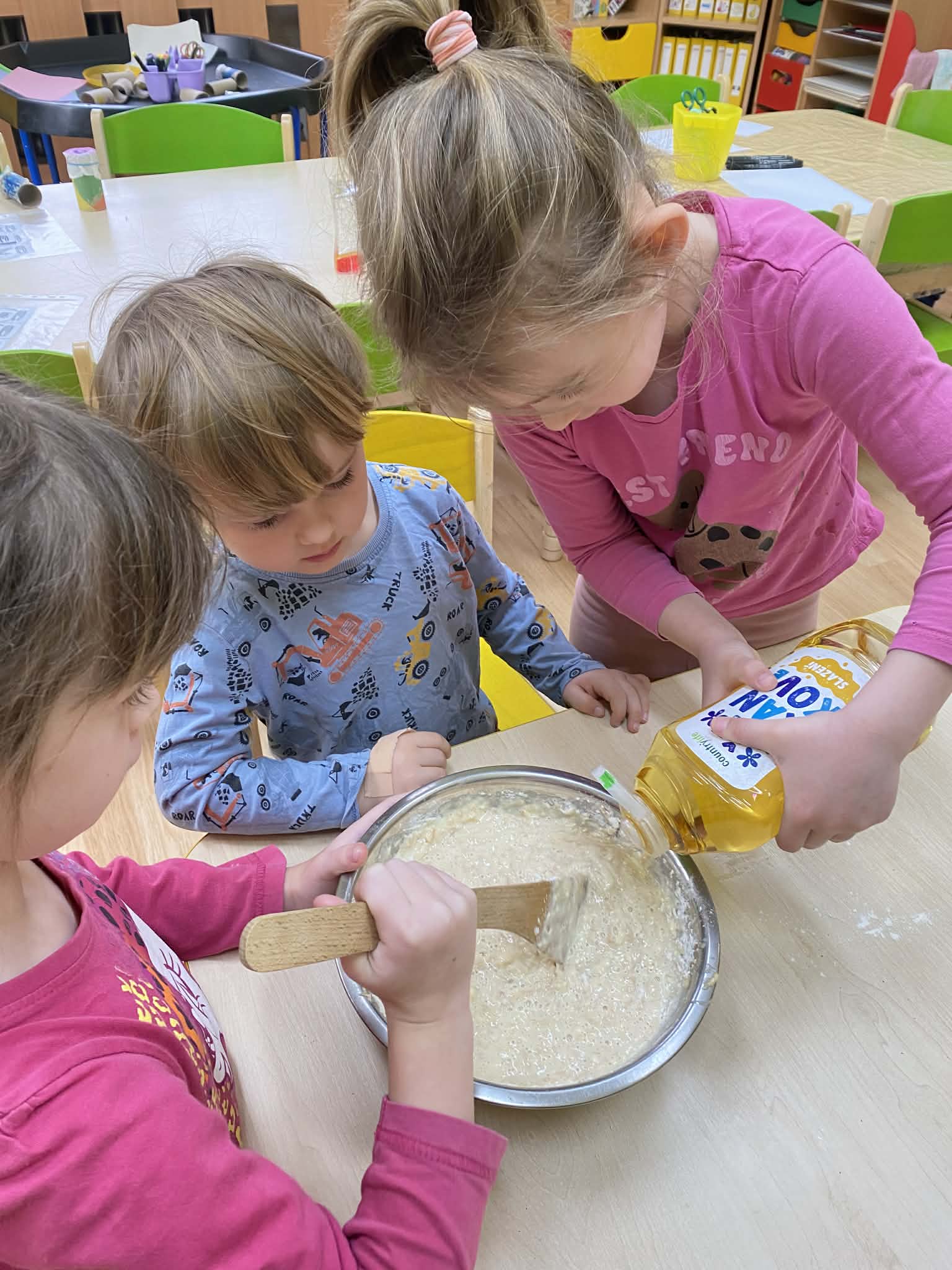 Včera se třída Berušek proměnila v malou pekárnu! 👩🏻‍🍳🧑🏼‍🍳 Tentokrát byla v hlavní roli jablíčka. 🍏🍎 Děti se opět staly opravdovými pekaři – s nadšením strouhaly ovoce, přidávaly suroviny a sledovaly, jak pod jejich rukama vzniká něco dobrého. A výsledek? Ten chutnal dokonce líp, než voněl. ✨