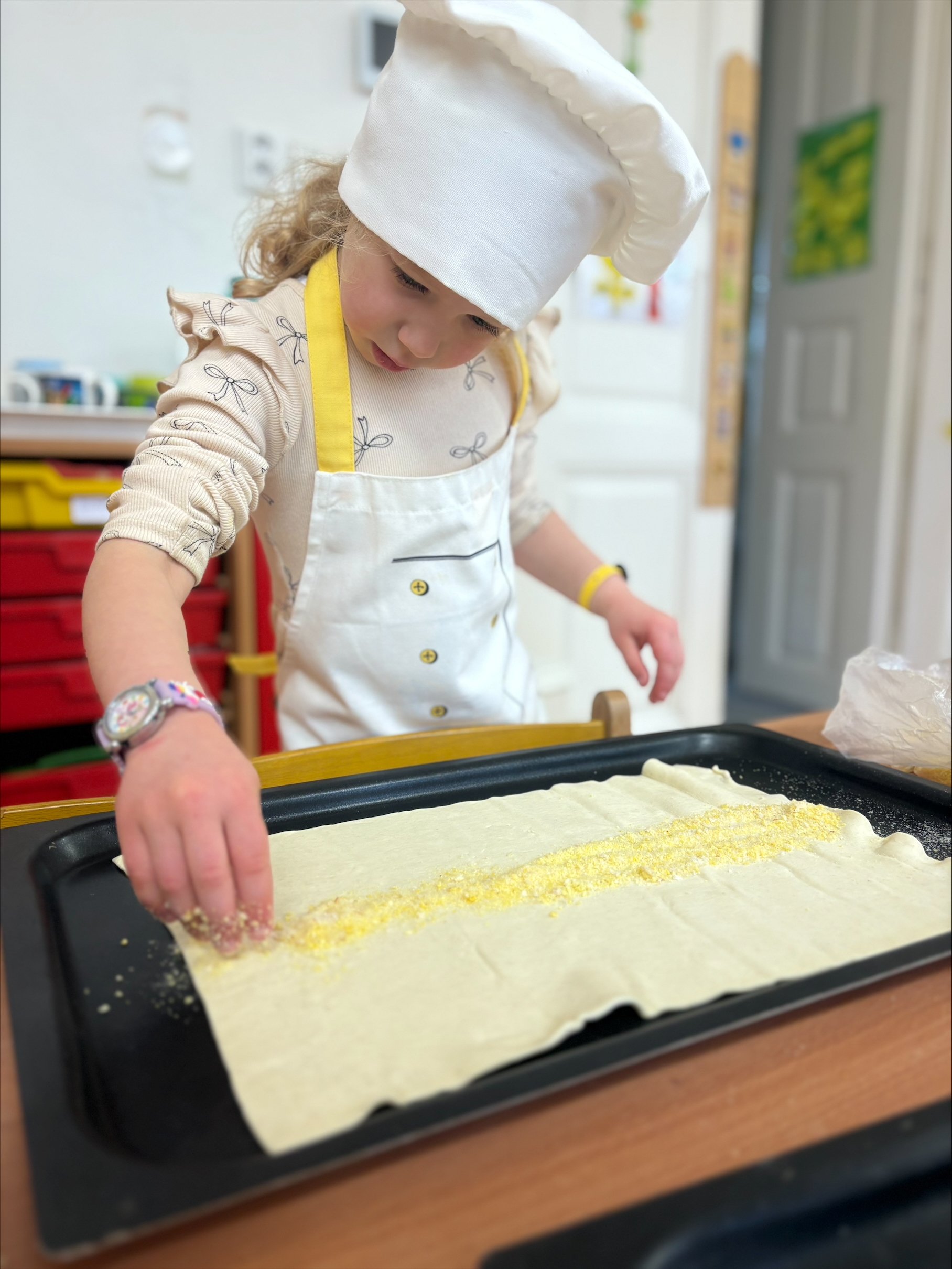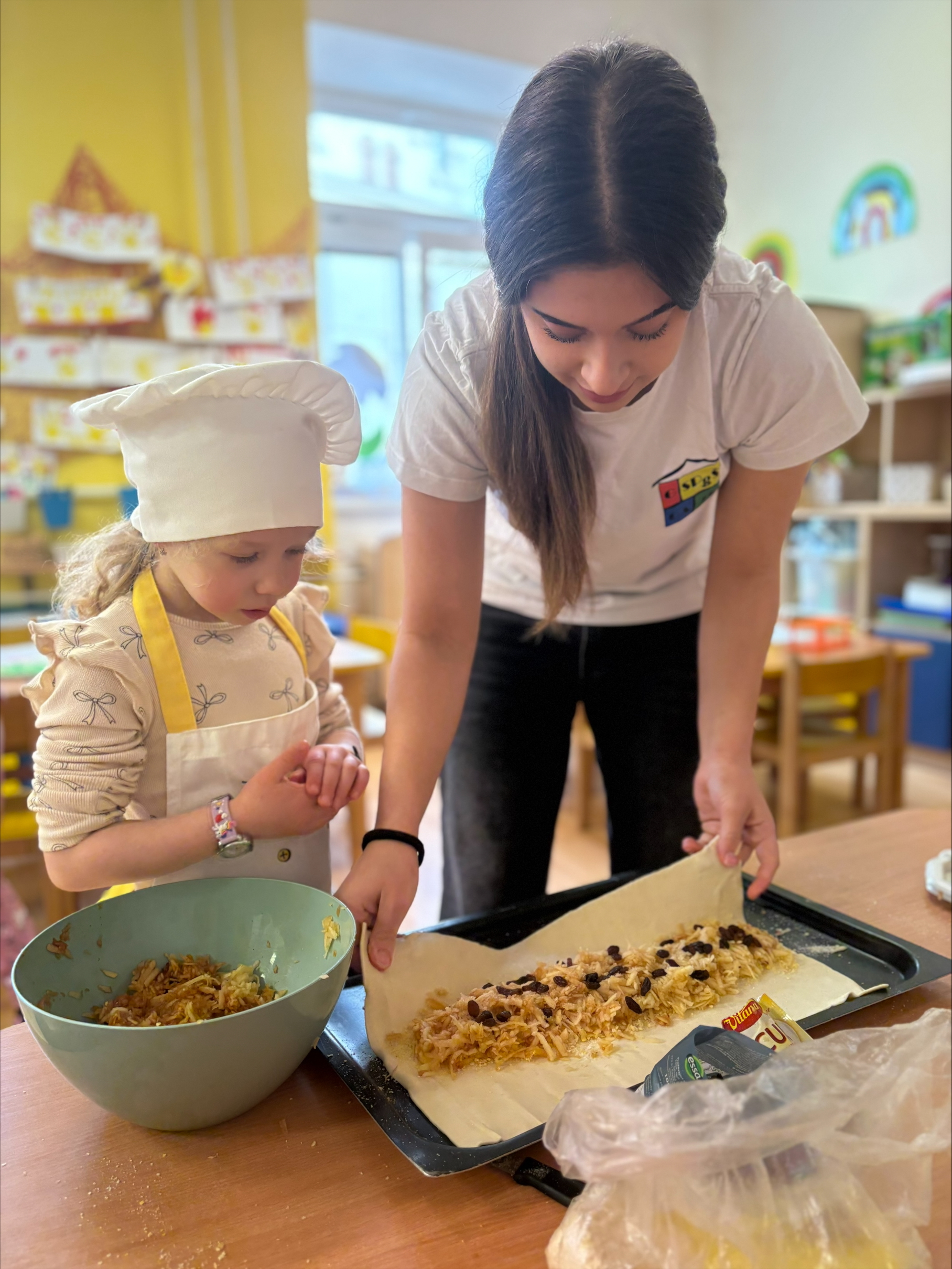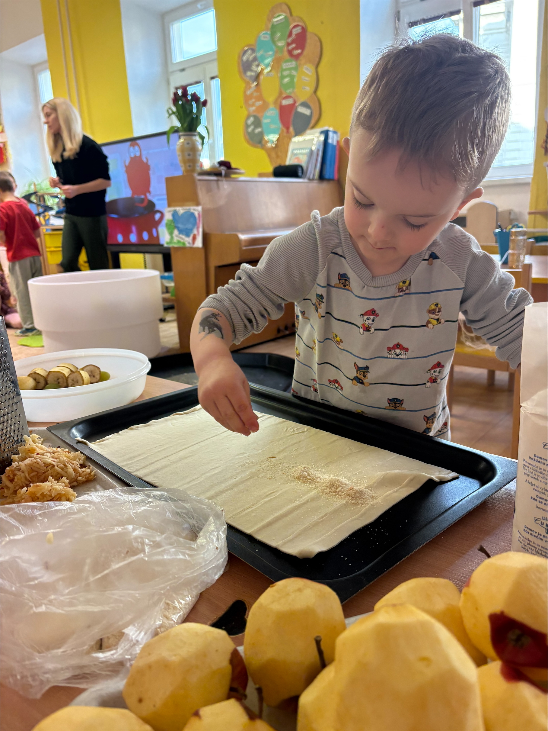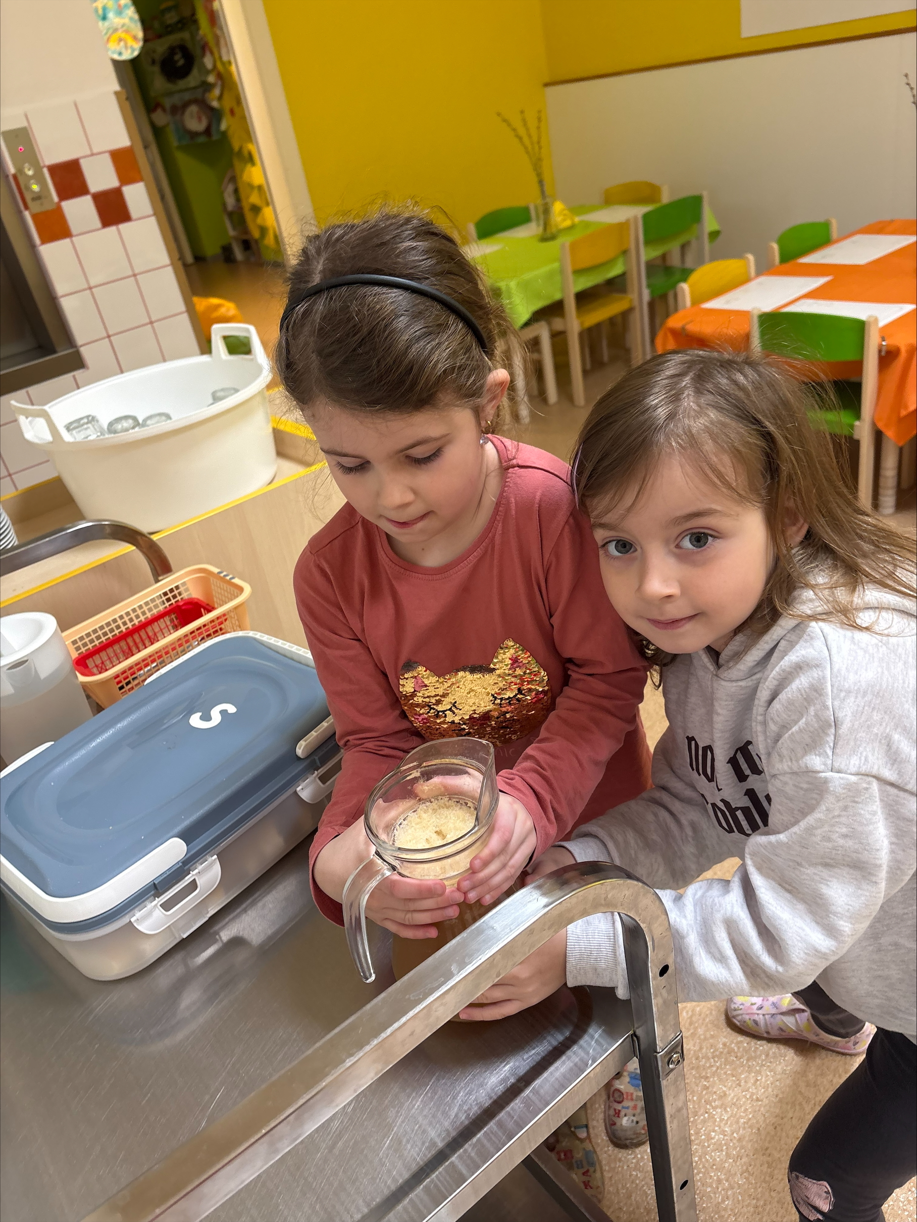Dnes jsme u žabiček oslavili Mezinárodní den jídelny-pomohli jsme paním kuchařkám a upekli štrůdly na odpolední svačinku pro nás i kamarády,odšťavňili jablka a vykouzlilo úsměv na tváři dárkem našim paním kuchařkám.