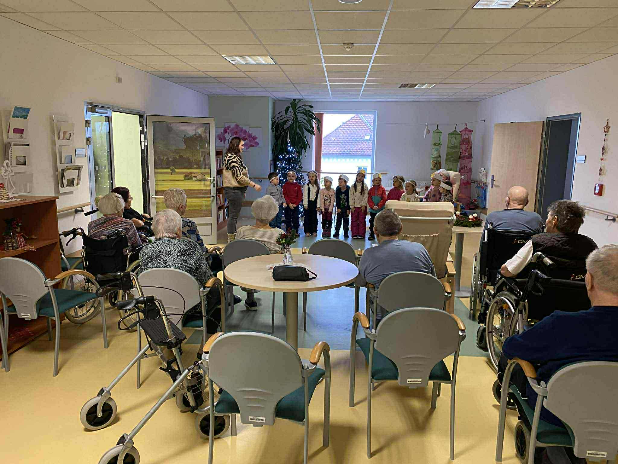 V úterý se děti ze sluníčkové třídy vydaly do Centra sociálních služeb U Lesíka, kde měly připravené malé vystoupení pro místní seniory. Děti zazpívaly několik písniček, řekly vánoční básničky a ozdobily vánoční stromeček. 🎄 Všichni byli nadšení – děti z příjemné atmosféry a nového zážitku, senioři z milé návštěvy a radosti, kterou jim děti přinesly. Bylo to krásné předvánoční setkání plné úsměvů a dobré nálady.☺️
