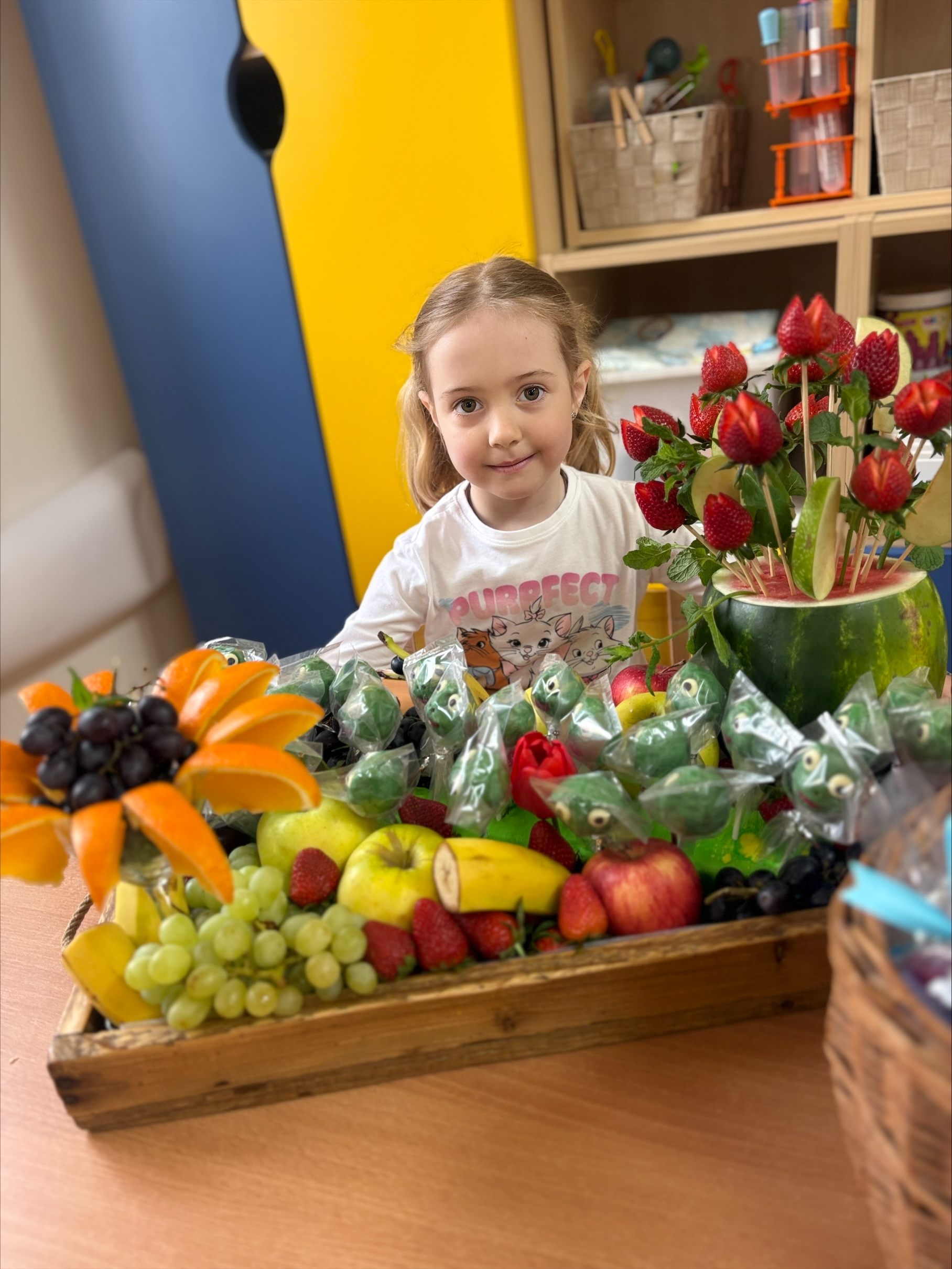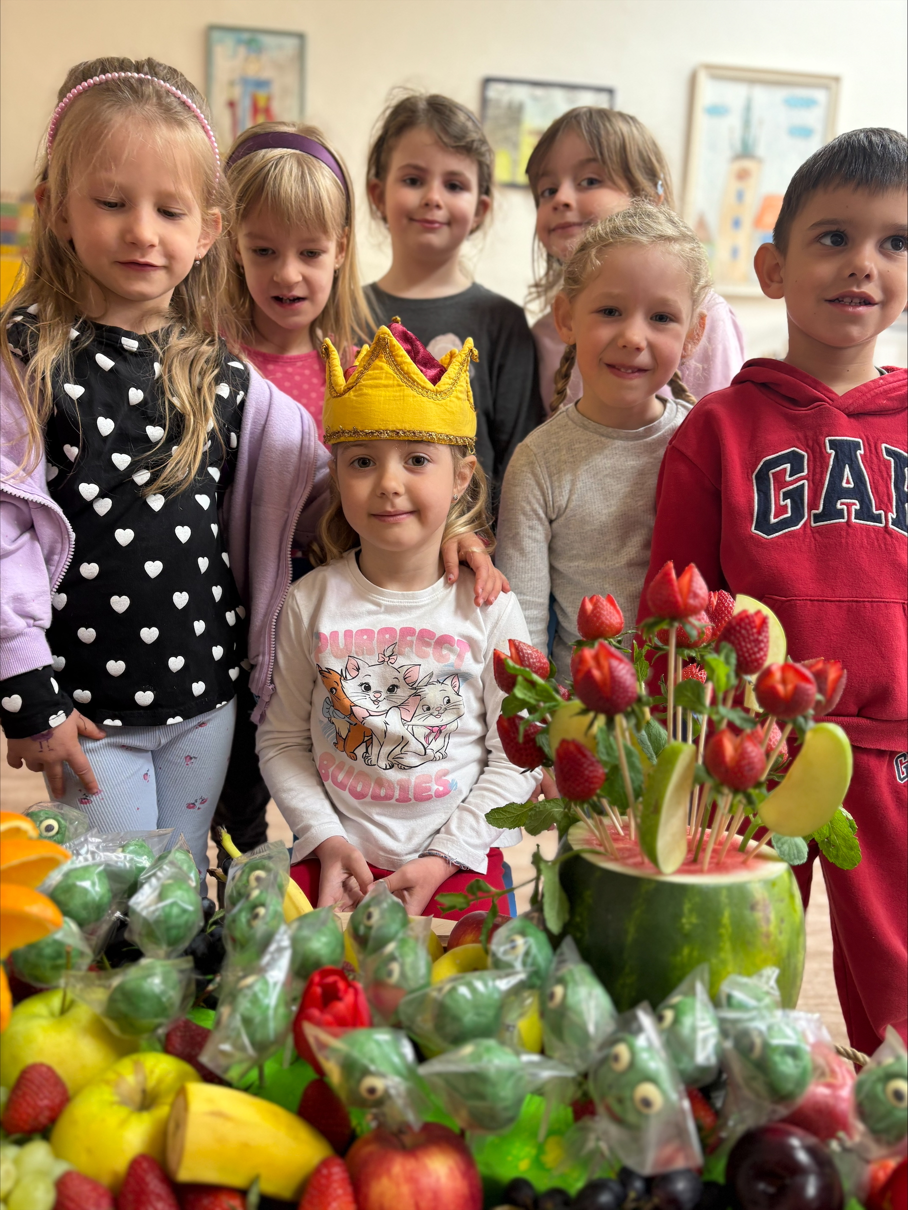 Oslava nasi Elinky-5 let.Maminka detem pripravila neskutecne pohosteni formou ovocneho talire a domacich lizatek na kterych si deti pochutnaly