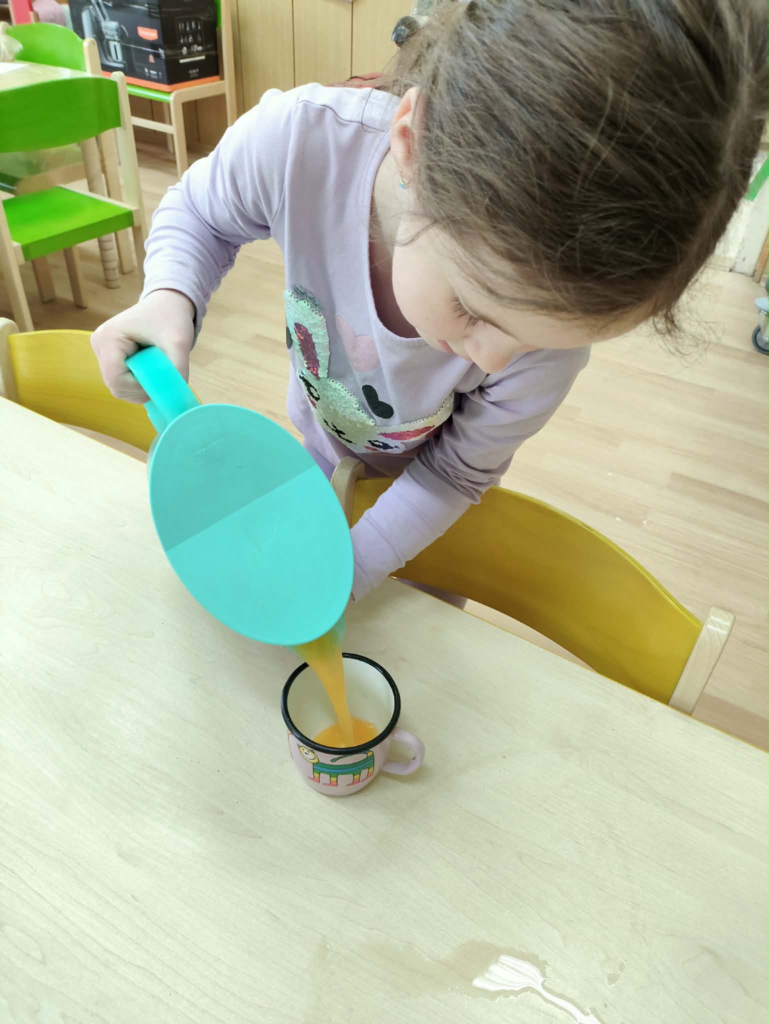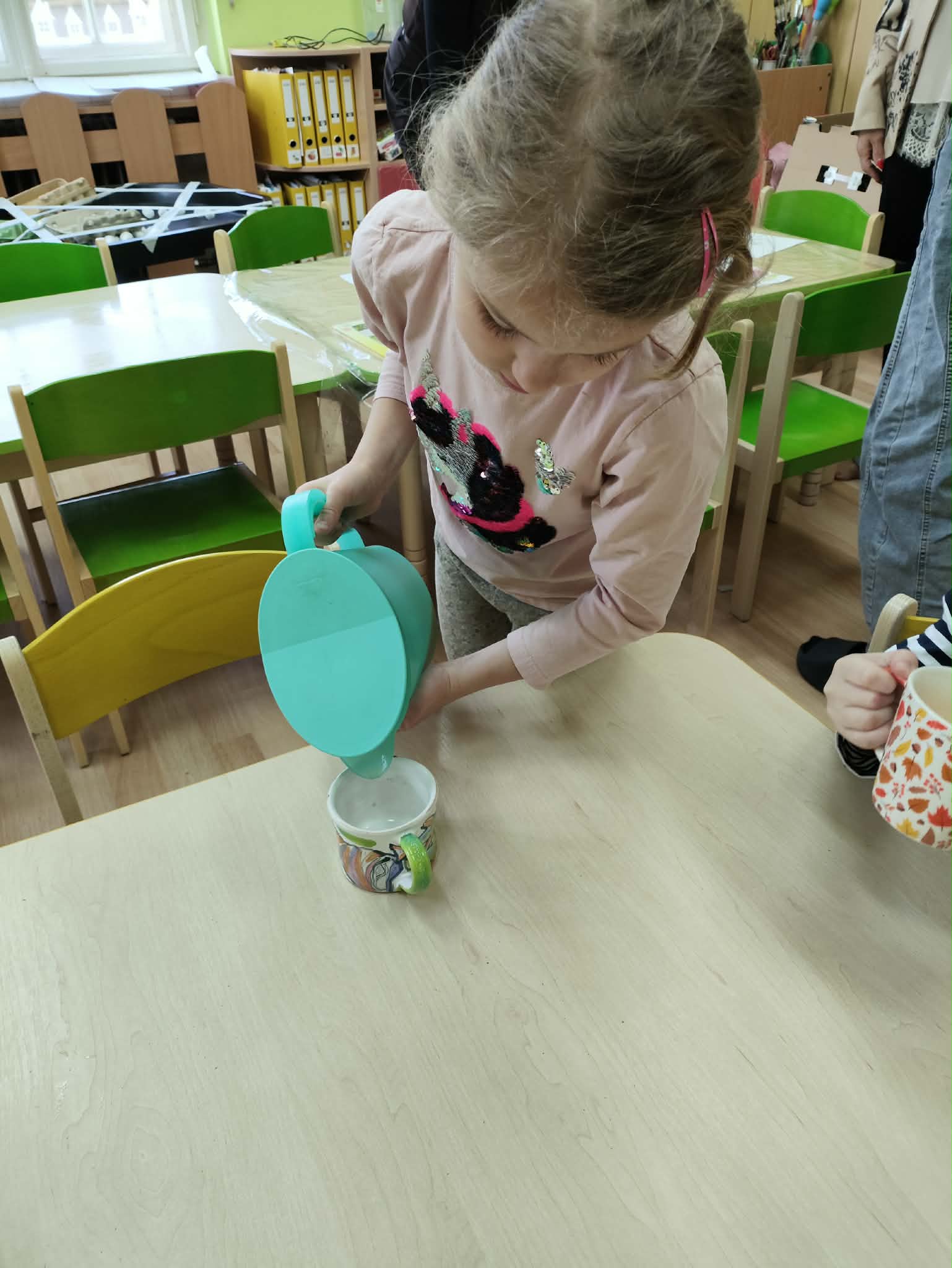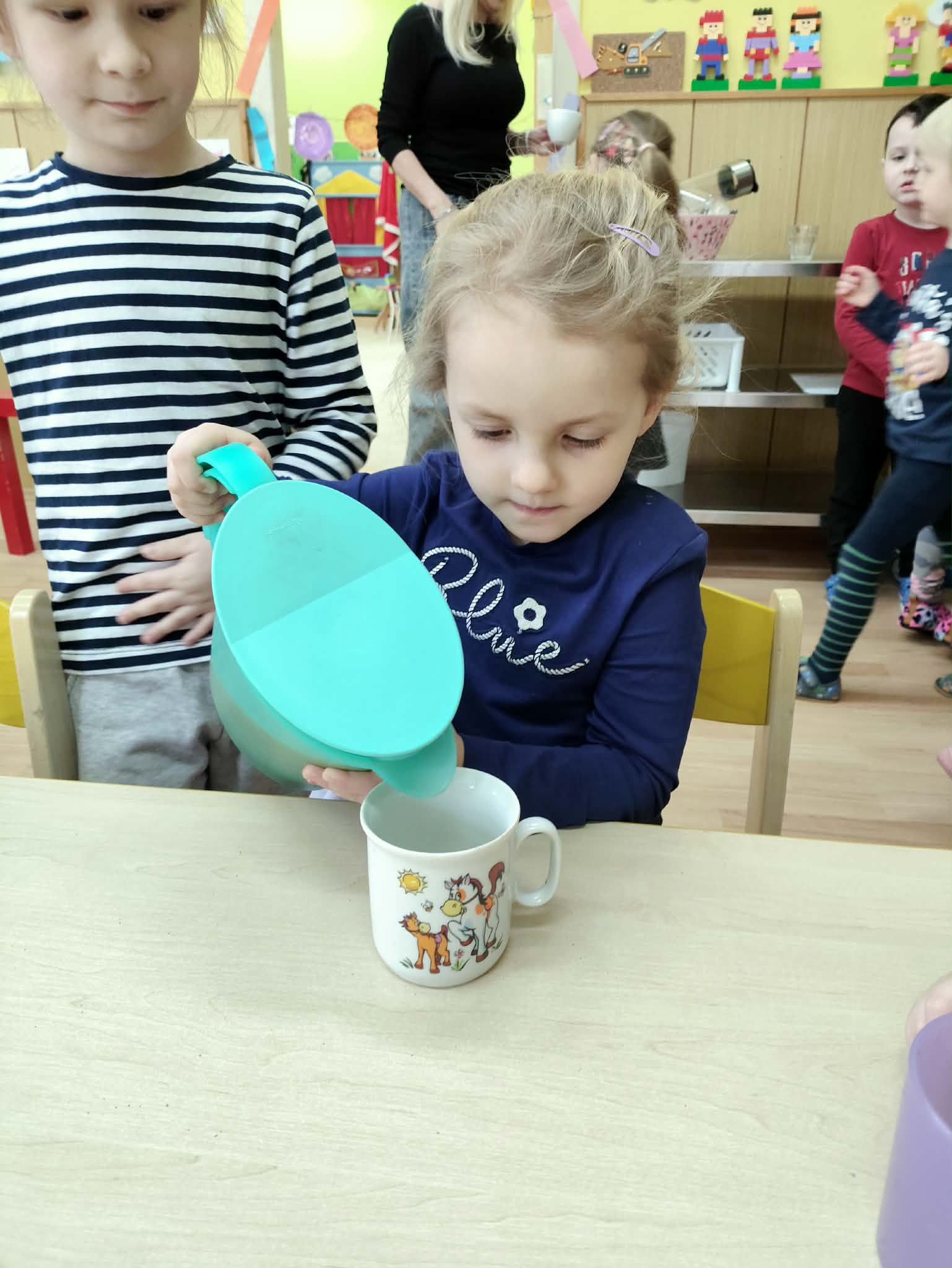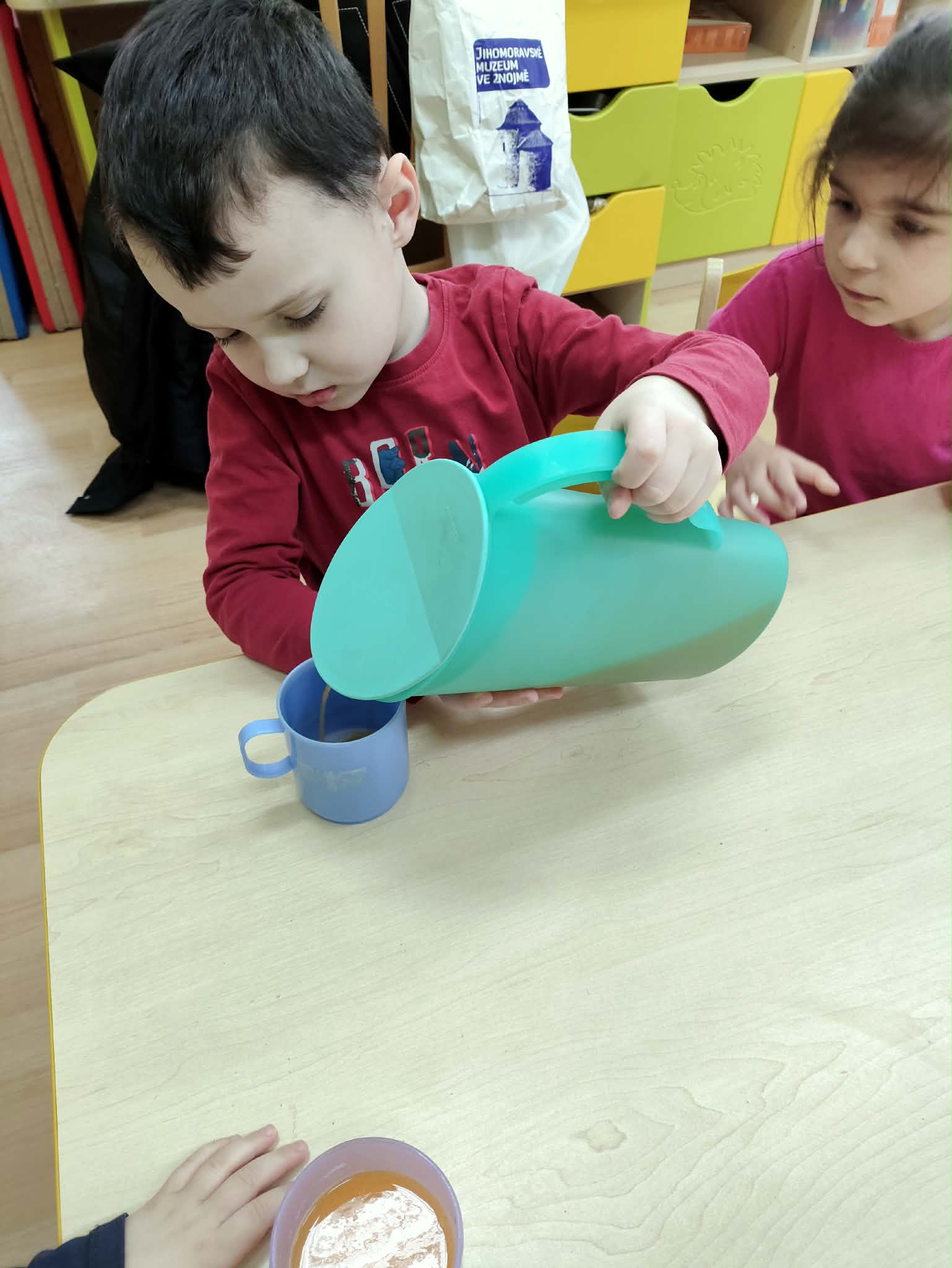 Pod dohledem paní učitelky děti pomeranče vkládaly do odšťavňovače a sledovaly, jak přístroj odděluje šťávu od dužiny. Aktivita byla pro děti nejen zábavná, ale také poučná – poznaly, jak funguje kuchyňský přístroj, procvičily si spolupráci a rozvíjely své smyslové vnímání.