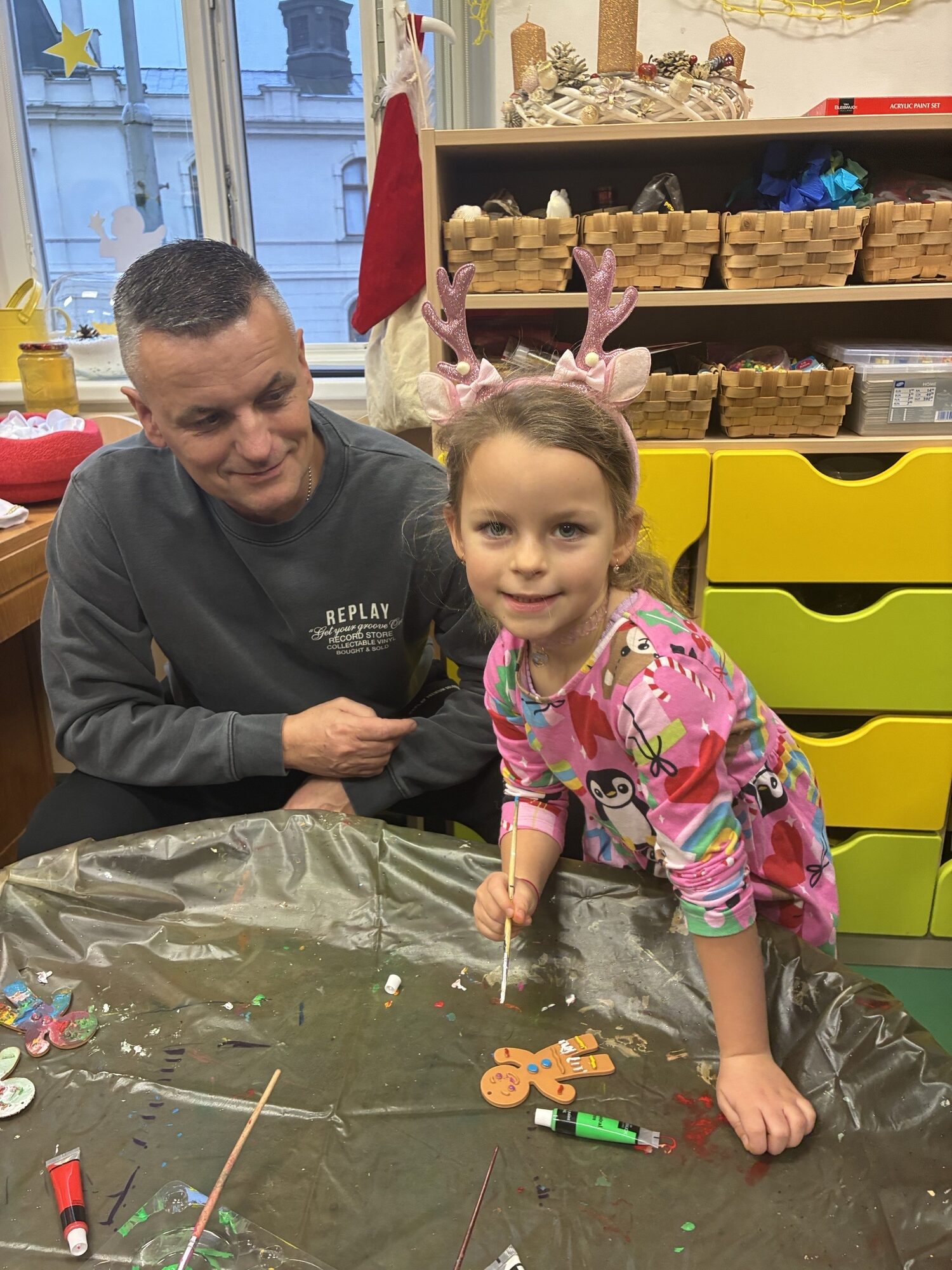 Nechyběl ani čas na volnou hru a společné povídání, díky kterému jsme si všichni mohli užít pohodovou atmosféru a předvánoční náladu. Rodičům jsme zatančili a zazpívali vanoční písničky. Největší kouzlo však nastalo, když jsme spolu při písni Štědrý večer nastal zapálili prskavky. Dětské oči se rozzářily – a ty dospělácké taky.