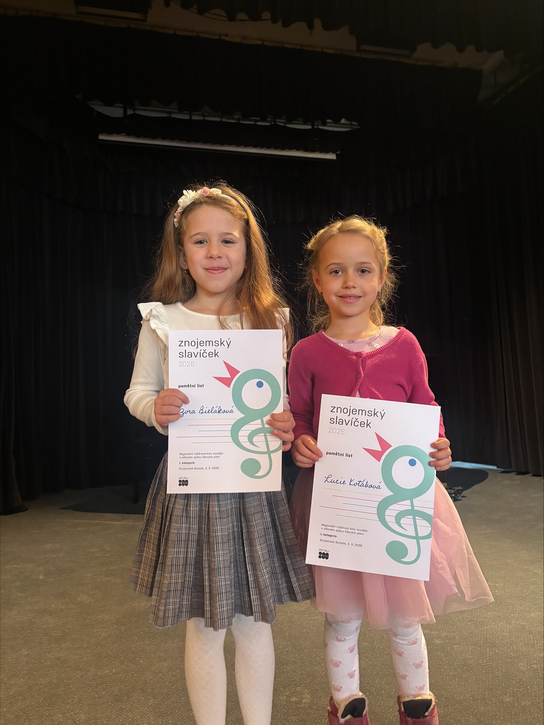 Dnes se dvě dívky z naší mateřské školy zúčastnily pěvecké soutěže Znojemský slavíček. Naši školku hrdě reprezentovaly Zorinka ze třídy Motýlků a Lucinka ze třídy Sluníček.