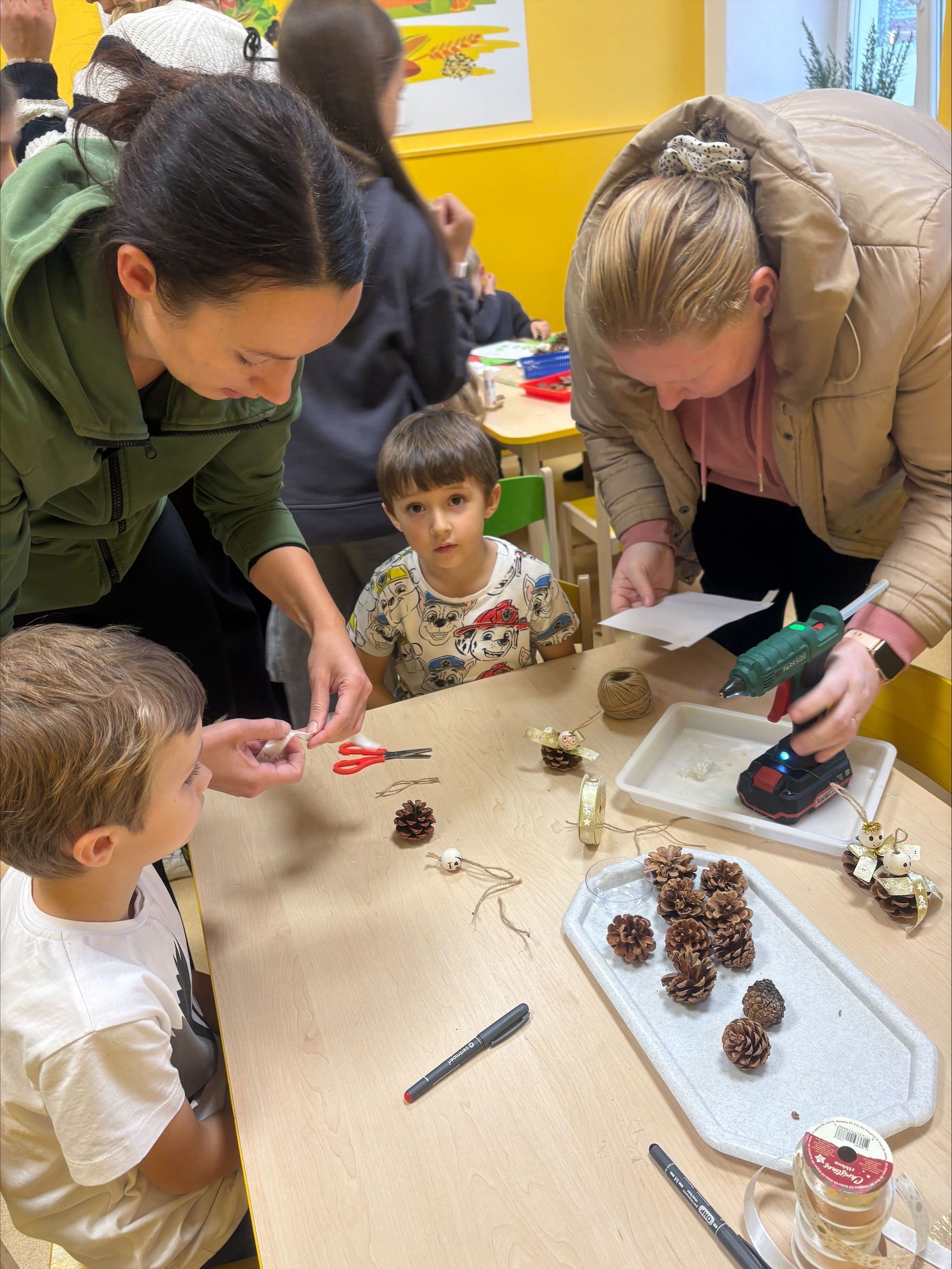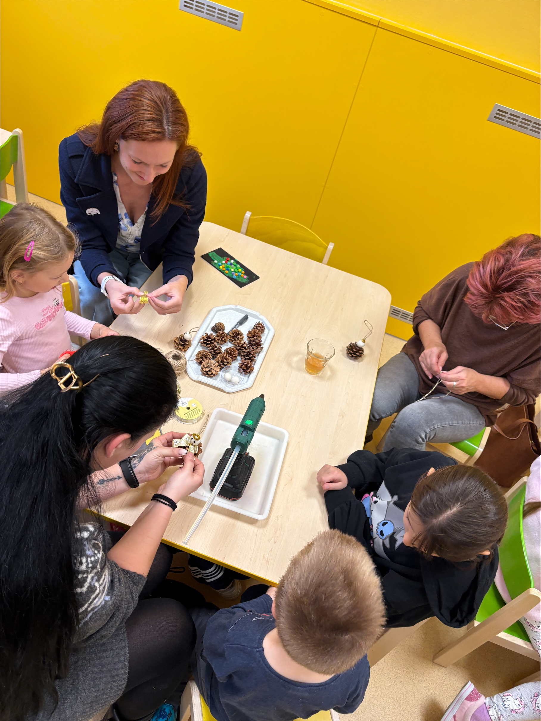 Dnes se naše jídelna proměnila v rodinné setkání.Šikovné ruce,správná parta a cíl vyrobit ozdoby na vánoční stromeček na Obrokově ulici.Všem moc děkujeme za účast